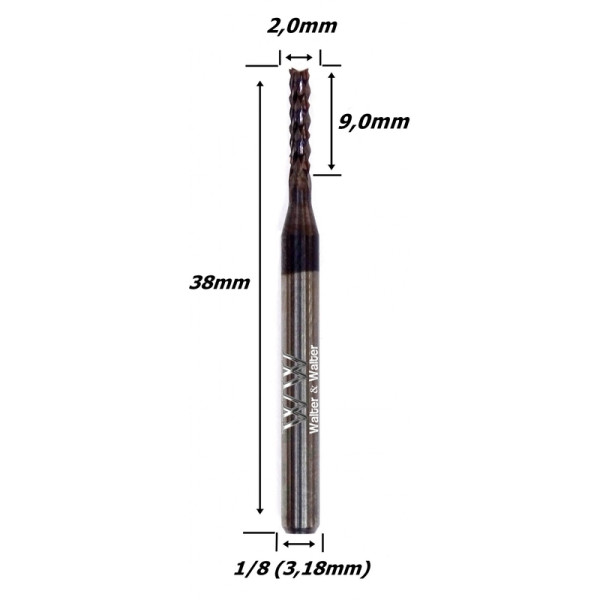 Produto: Fresa Raiada Metal Duro (Hrc45) 2,0mm X 9,0mm X 3,17mm (1/8) Haste. (Ftr1909)