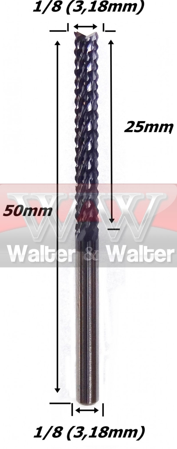 Fresa Raiada Metal Duro (Hrc45) 3,17mm X 25mm 3,17mm (1/8) Haste. (Ftr1912)