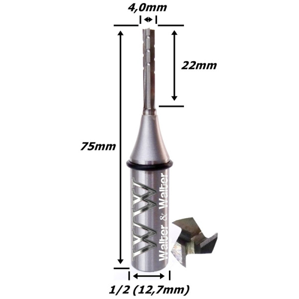 Produto: Fresa Reta Paralela TCT 4,0mm (3c) X 22mm Corte X 75mm Total X 1/2 (12,7mm) Haste. (Ftr2794)