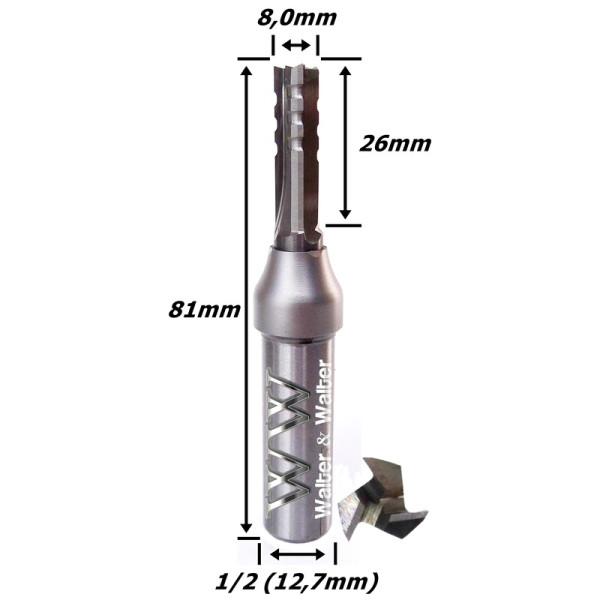 Produto: Fresa Reta Paralela TCT 8,0mm (3c) X 26mm Corte X 81mm Total X 1/2 (12,7mm) Haste. (Ftr2957)
