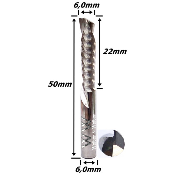 Fresa Up Down Cut 6,0mm (1c) X 22mm Corte X 50mm Total X 6,0mm Haste. (Ftr3287)