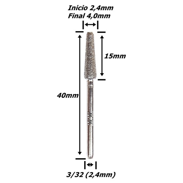 Ponta Diamantada (Conica) 2,4mm X 4,0mm X 2,4mm (3/32) Haste. (Ftr2586)