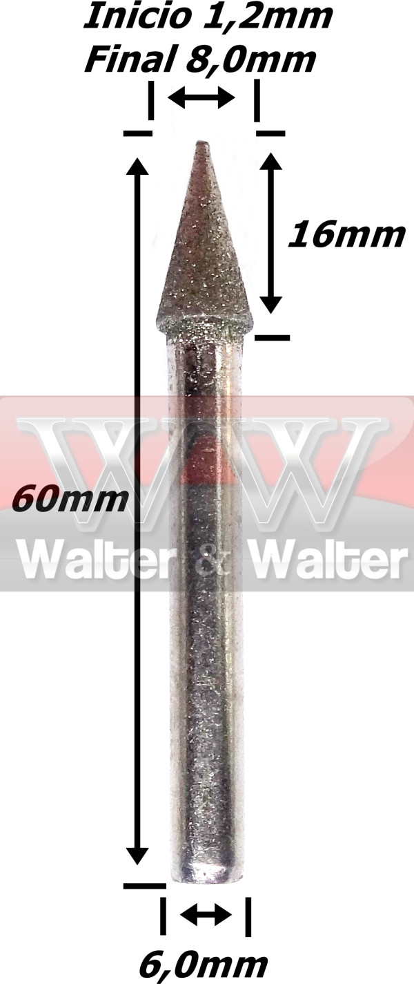Ponta Diamantada (Conica) Início 1,2mm X Final 8,0mm X 6,0mm Haste. (Ftr0874)